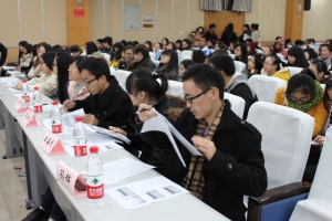 In order to further create a favorable atmosphere for learning and practicing English and show what our college students can do with what they have learned, the Department of English held the final round of “English Quick Quiz Show”, one of the most important programs for the British Cultural Festival, on December 4, 2014. Among the members of the panel of judges were Miss Li Guanqun, Ms. Shen Hongbo, Miss Wang Beibei, Miss Cui Weisong, Miss Xu Jingjing, Mr. Shen Hui and Mr. Xia Yangyang. Mr. Wang Rongbiao also contributed his efforts to the activities in helping and directing the activity. All the freshmen from the Department of English participated in this event.