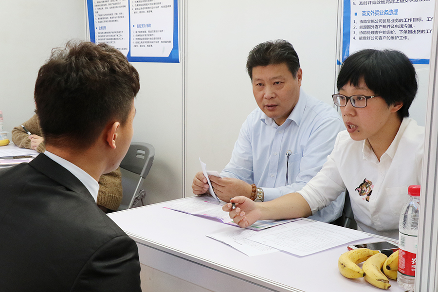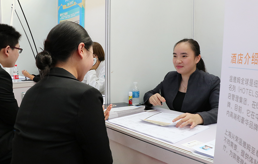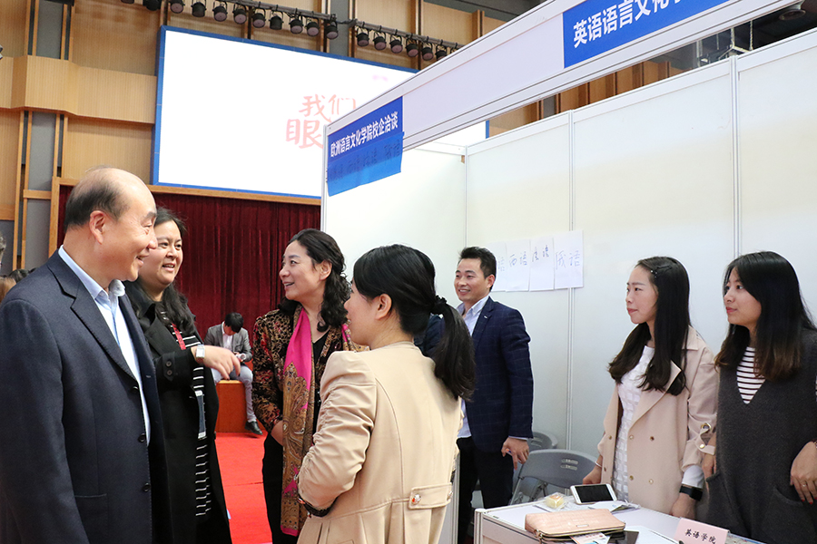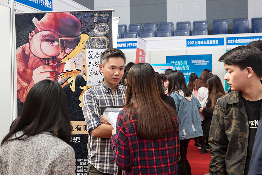 常务副校长毛忠明,党委书记、副校长朱南勤,副书记、副校长段仁启深入招聘会现场,了解市场和用人单位对毕业生的需求情况。 此次校园招聘会参会单位数量众多,涉及行业广泛,其中包括中国东方航空,上海迪士尼度假区,上海海昌海洋公园,上海国际机场地面服务部,昂立教育集团,韦博教育集团,新世界教育集团,绿光教育集团,新东方集团,上海东方明珠广播电视塔有限公司,上海东方国际医院,上海外服企业管理服务有限公司,三星(贸易),上海世博洲际酒店等知名企业,还有众多涉及翻译、旅游、教育培训等领域及行业的用人单位,为毕业生提供了多元化的选择。 招聘会提供了包括翻译、培训、财会、行政、国际贸易、市场营销、酒店管理、人力资源、汽车、计算机软件、广告策划、品牌会展及数控机电等在内的969个岗位,需求人数3733人,基本覆盖毕业生各专业。其中,外语类岗位持续走热,一大批单位现场招聘各语种的优秀人才,相关需求人数2637个。