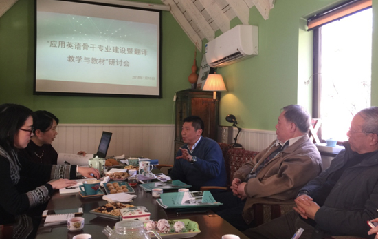 傅敬民教授为翻译研究方向博士生导师,担任《上海翻译》执行主编、上海市科技翻译学会副会长,中国翻译协会理事等多项职务。他从现行翻译教材存在的问题入手,对英语学院校本教材的定位、书名、章节的前后呼应、练习的关联度、翻译工具和附录章节等提出了指导意见。随后的发言中,来自高教社的王雪婷编辑从出版的实际出发对教材的定位、编排体例和主要内容谈了自己的看法。 2017年,我校应用英语专业在中高职贯通工作取得了重大进展。本次研讨会,英语学院特别邀请了上海浦东外事服务学校、上海商业会计学校负责贯通专业的老师,商讨教学管理、教材建设,以期在新的一年里,贯通培养工作在协同育人、协作共建的机制下,取得更大成绩。 本次研讨会内容丰富,涉及了骨干专业建设、翻译教学与教材编写、中高职贯通的各个方面与工作细节,拉开了学院新的一年教学诊断与改进的序幕。