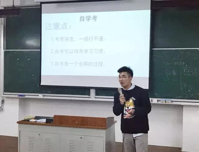 他接着,他主要分享了在场同学们都渴望了解的本科生活。作为一名准“双学士学位”的校友,他详细地为学弟学妹们介绍了自学考与十八校联考的异同点以及“两不误”学习计划,让现场同学们更加清晰地看到了专科学生可选择的前途。针对现场同学提出的“花5年时间学全日制本科学生4年就能学完的课程是不是划不来?”他予以了正面回复,“我们不是比别人多浪费了1年时间,而是比别人多学习了1年的知识。