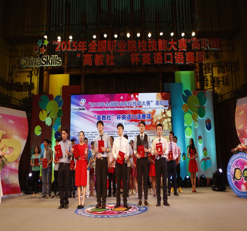 (2015年,1401班王聪荣获2015年全国职业院校技能大赛高职组“高教社”杯英语口语比赛特等奖)