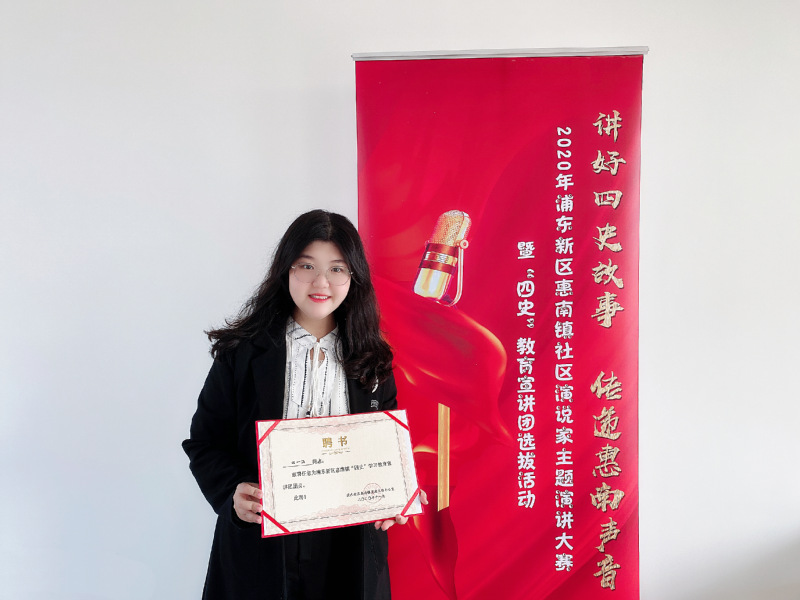 “四史明初心,青春勇追梦”学校田一涵老师获“惠南镇社区 优秀演说家”并成为浦东新区惠南镇“四史”学习教育宣讲团 成员