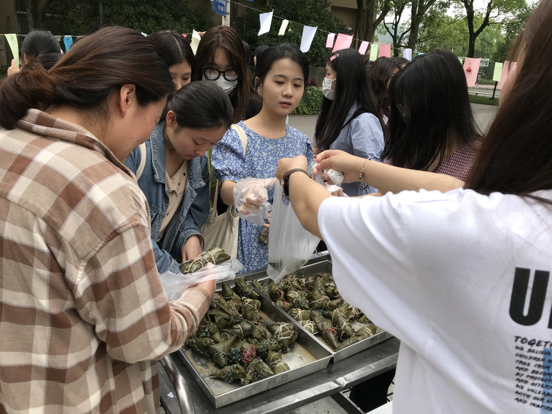 活动正式开始前,老师们和同学们先在北区食堂一楼学习包粽子。同学们一次次尝试、学习,积极又努力,亲手将自己包的粽子下锅,体验亲手制作的乐趣,感受浓厚的文化氛围。