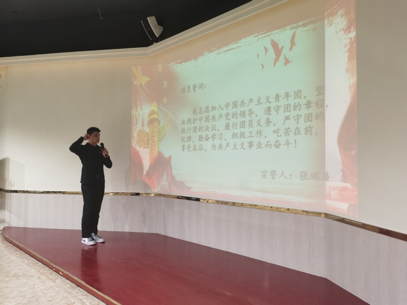 未来属于青年 希望寄予青年 组织部部长张盛骅带新团员入团宣誓词“我志愿加入中国共产主义青年团,坚决拥护中国共产党的领导,遵守团的章程,执行团的决议,履行团员义务,严守团的纪律,勤奋学习,积极工作,吃苦在前,享受在后,为共产主义事业而奋斗!”