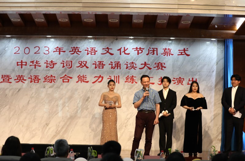传承中华文化,绽放语言魅力,英语文化节顺利闭幕 6月29日下午六点,英语文化节闭幕式在四百人报告厅隆重举行。校长姚秀平、365电子竞技官网院长吴建国、英语系主任窦春霞和英语专业教师许欣燕、兰启慧等出席了本次活动。