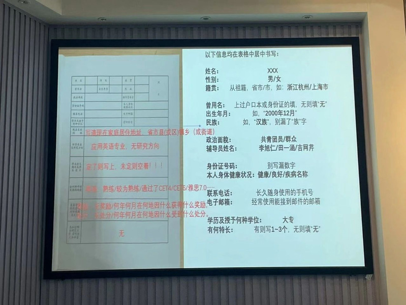 PART 02 李旭仁老师就毕业生信息填写、四联单填写、离校手续办理、征兵报名等进行了详细讲解。 他还指明11月1日会召开校招聘会,各位毕业生可以前往了解情况并提交简历、就业推荐表。同时预祝各位毕业生同学们能找到自己心仪的工作,绽放出属于自己的光芒,做新时代勇担当、敢作为的有为青年。