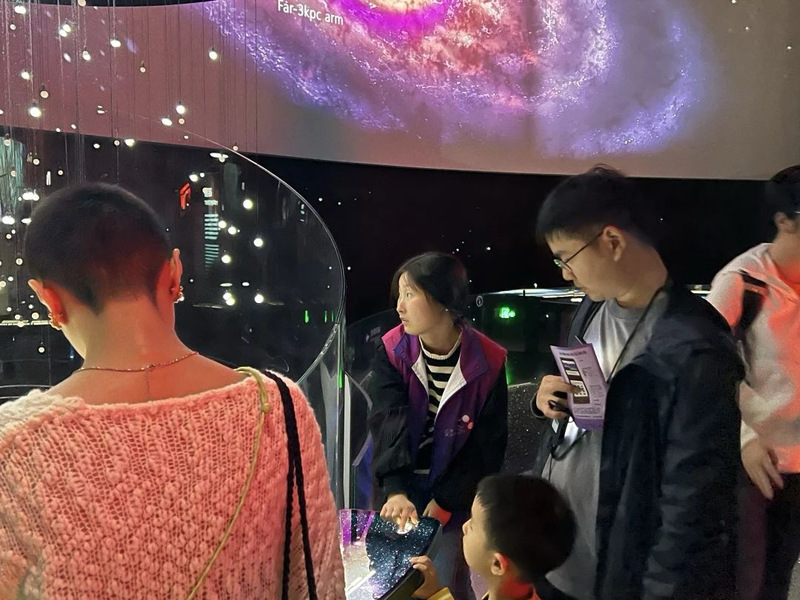 在天文馆中,同学们坚守岗位,恪守职责,我院志愿者们训练有素,以热情满满的态度和优秀队专业素养展现了英院学子的良好风貌。