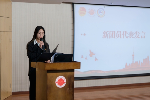 由英语系分团委副书记顾瑜婕同学为新团员宣读《中国共产主义青年团章程》。